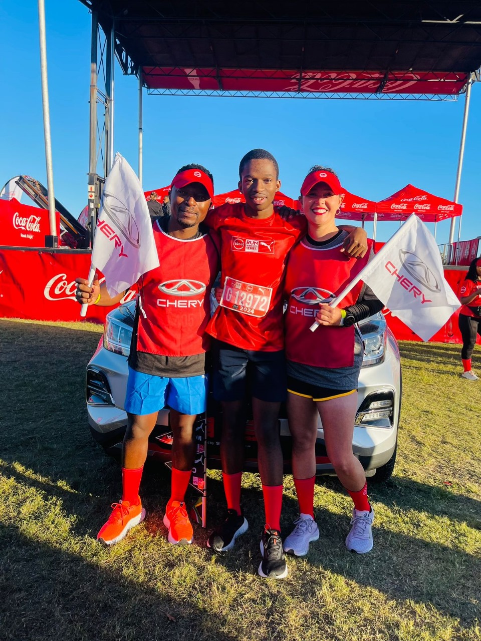 All of the 12 0000 entrants in the race were automatically eligible to win a brand-new Chery Tiggo 4 Pro LiT Vehicle valued from R279 000. Ultimately four finalists were selected in a random draw. The finalists, three ladies and the youngster were on the stage before the start of the race.